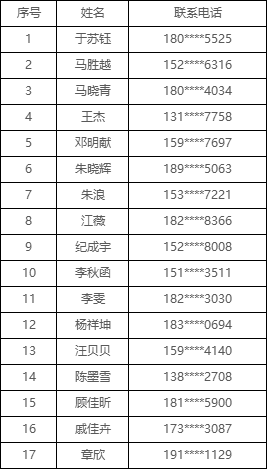 根据招聘相关规定,拟录用以下17名同志,现公示如下: