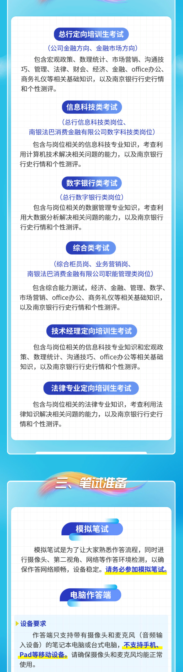 (二)信息科技类考试(总行信息科技类岗位、南银法巴消费金融有限公司数字科技类岗位)