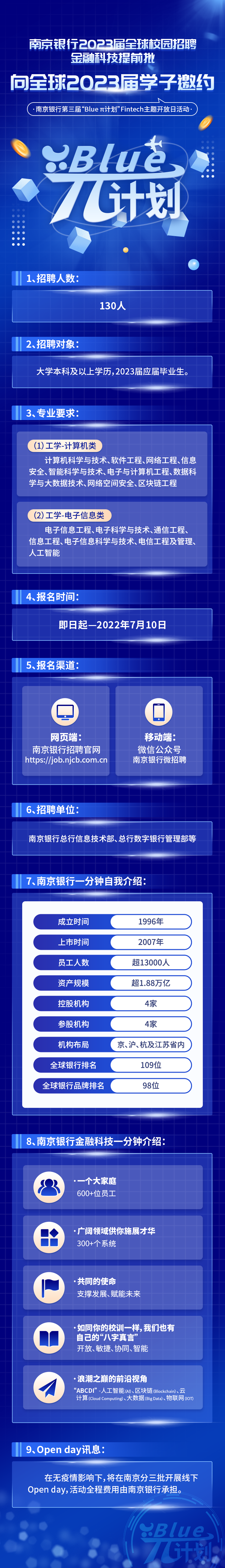 南京银行2023届全球校园招聘金融科技提前批
