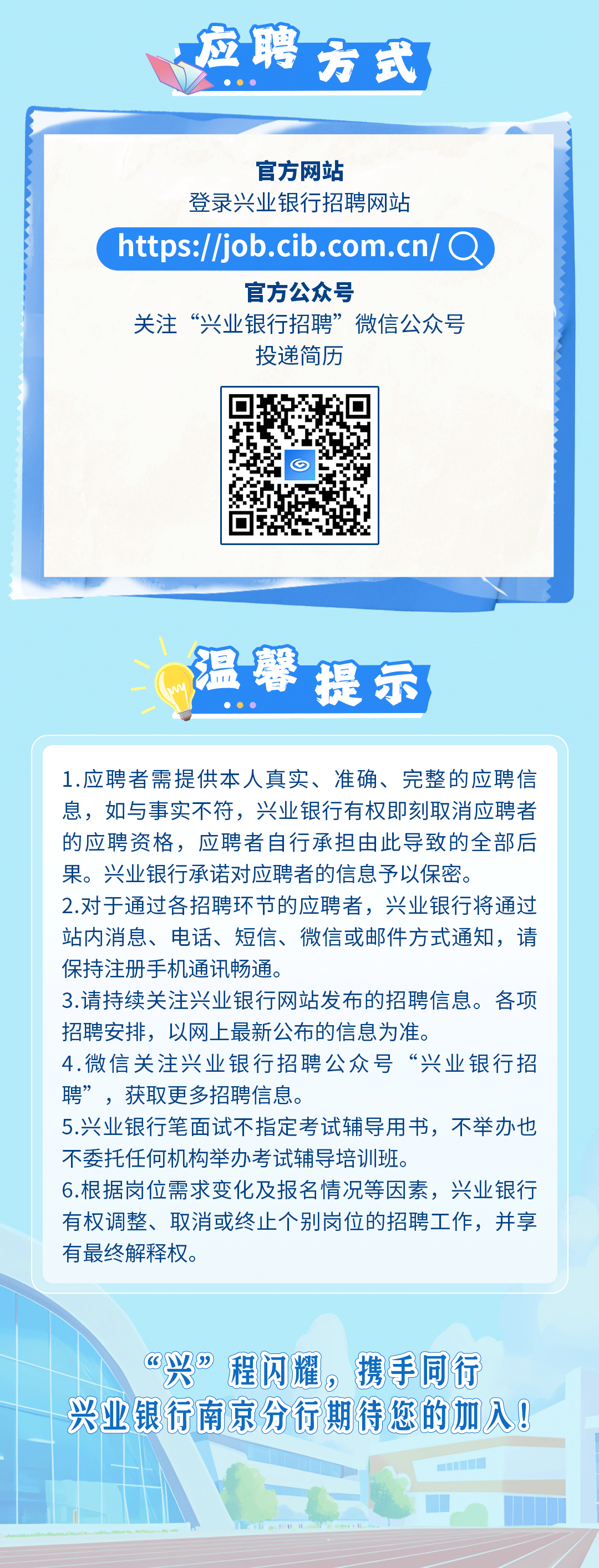 (三)请持续关注兴业银行网站发布的招聘信息。各项招聘安排,以网上最新公布的信息为准。
