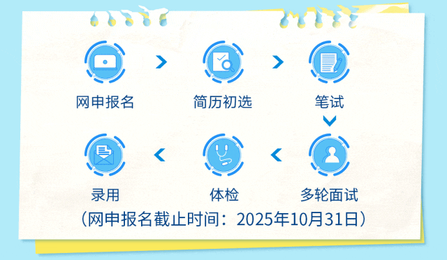 包含网申报名、简历初选、笔试、面试、体检、录用等环节。