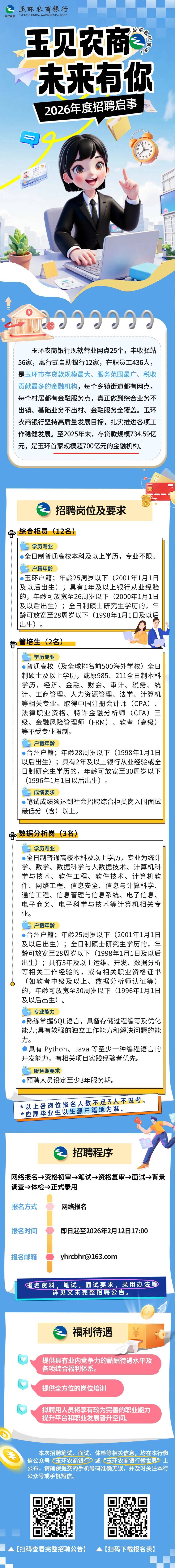 2026年玉环农商银行招聘启事