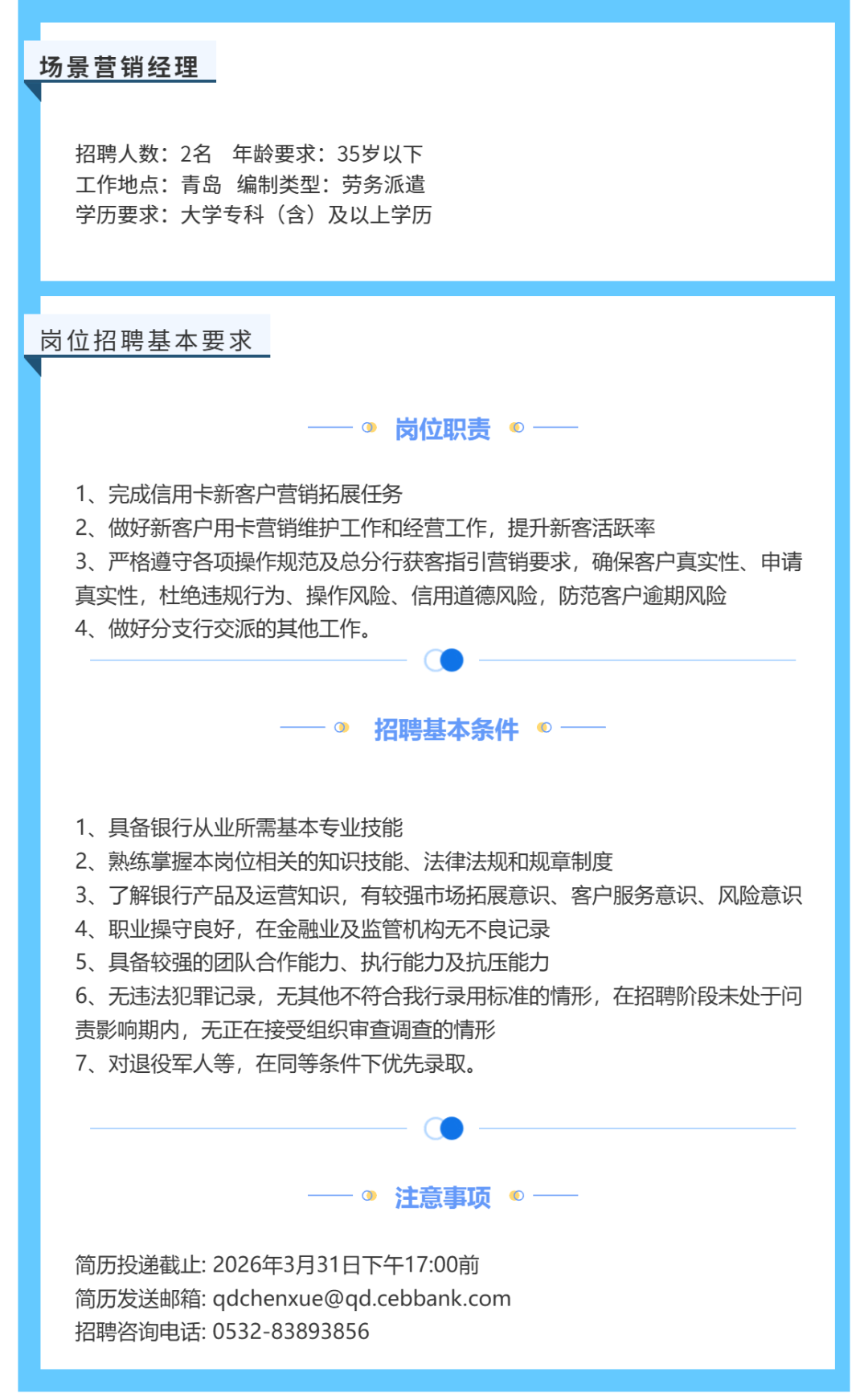 中国光大银行青岛分行信用卡2026年劳务派遣人员招聘