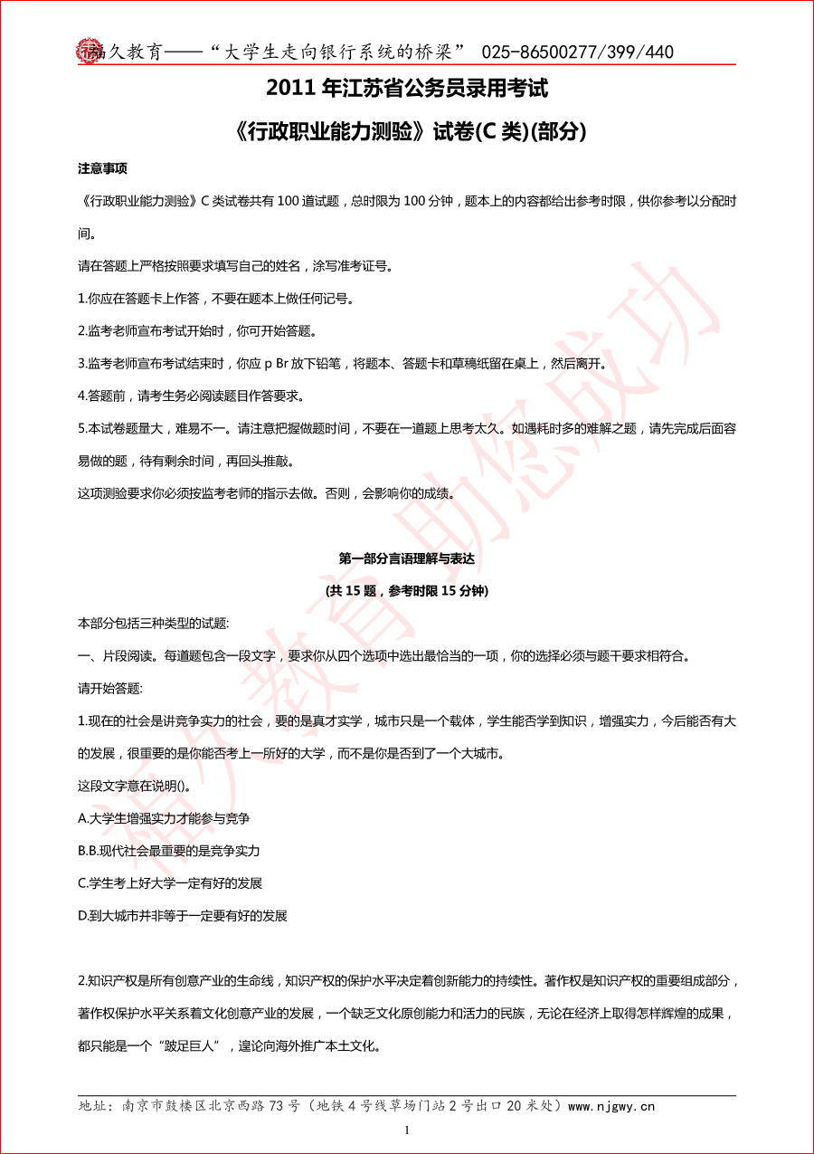 2011年江苏省考行测C类真题与解析(部分)