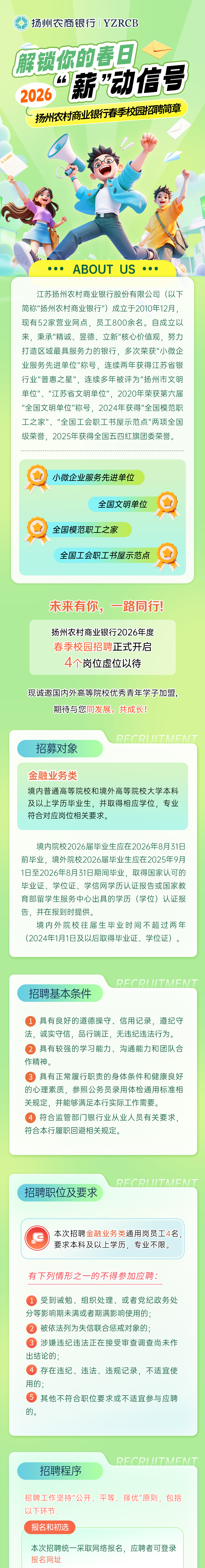 2026年度扬州农村商业银行春季校园招聘简章
